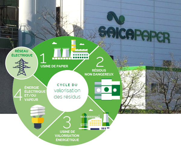 La nouvelle centrale d’une puissance de 73,4 MW viendra en remplacement d’une chaudière à gaz. Elle produira de la vapeur à haute pression à 46 bars et 360°C qui sera directement injectée dans le réseau de vapeur et couvrira la demande du processus de production de carton. Elle sera alimentée par les sous-produits de l’usine mais également par des déchets de bois de classe B issu de la déconstruction et sourcés à proximité du site. Cet équipement, qui bénéficie d’un soutien financier de l’ADEME devrait permettre de réduire la consommation de gaz de l’usine de plus de 85 %.